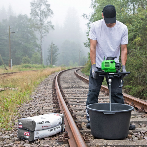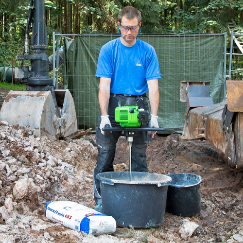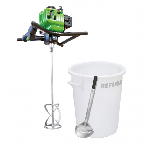 This hand held petrol powered mixer is recommended for external use mixing mortar and epoxies