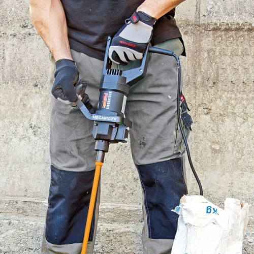 It is supplied with an MR3 130G 5" paddle and is best for mixing heavy materials including hardwall and bonding, polymer renders and EIFS, floor screed, epoxy and repair mortars