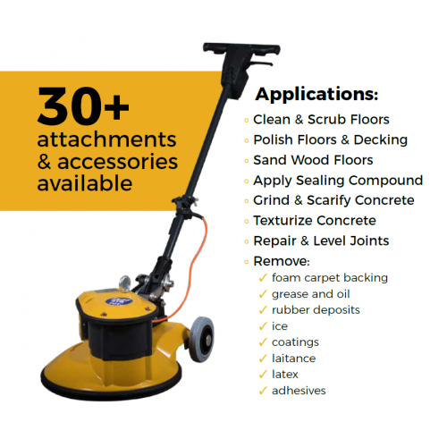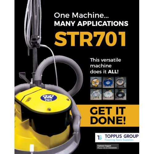 SPE STR 701 Rotary Machine is maintenance free and offers total reliability and is the result of over 15 years constant development and improvement. An exclusive range of cleaning and grinding heads have been developed to solve the many problems faced on site. The range includes tungsten carbide, diamond and silicon carbide attachments together with a comprehensive range of brushes (all accessories are available to be purchased separately) . The STR 701 can be operated dust free when used with the S5026 dust extraction skirt and suitable vacuum.
