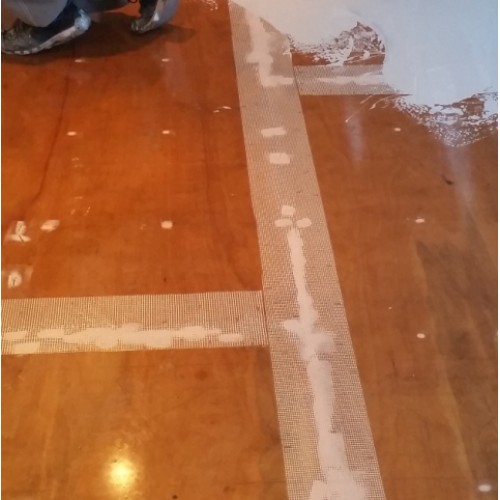 Fibreglass mesh is applied with self-levelling compounds when the substrate is unstable before applying the finish.