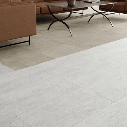 A stylish cement-effect tile with a soft tan hue, ideal for commercial interiors seeking warmth and modern sophistication.