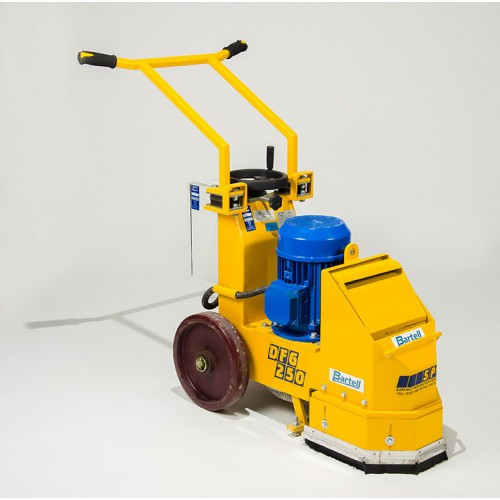 The SPE DFG 250 is available in 3 phase electric or petrol engine powered versions and is ideally suited for the grinding of most types of concrete floors. The machine has a dust extraction port for dust free operation when used in conjunction with SPE vacuums. The rear wheels are mounted on a pivoting axle which allows the weight balance of the machine to be altered according to the job specification and requirements. To aid operator comfort the handle bars are mounted on rubber vibration damped clamps. The machine has the facility for the application of water at the head when wet grinding is required.