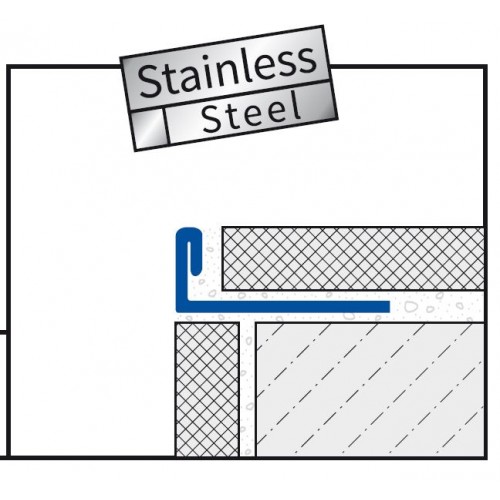 L Shaped Edge stainless steel trims for walls and floors with a narrow visible edge.