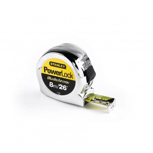 Stanley Powerlock Tape Measure 8m made with a chrome high impact ABS case, secure blade lock designed not to creep when in locked position, True zero end hook for accurate measurements and has a Mylar polyester film which extends the life of the entire blade.